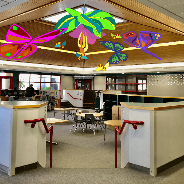 Keywords Suspended Banners, Aerial Art, Fabric Sculptures, Custom Installations, Atrium Design.